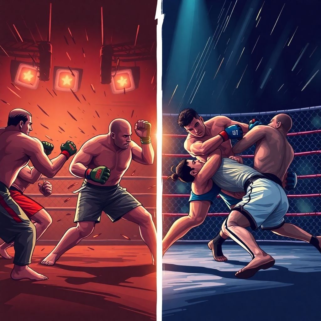 Другой пример — борец, который раньше просто влетал в проходы и надеялся зажать соперника на земле до конца раунда. В современном ММА такие бойцы быстро «считываются». Чтобы выживать на уровне, он добавляет в свою игру стойку: не становится «кикбоксером», а учится использовать удары как инструмент для перевода. Пара-тройка простых, но надежных связок — например, двойка в голову, перевод в ноги, добивание сверху — уже заставляют соперника гадать. На тренировках этот борец отрабатывает входы не со старта зала, а после 30–40 секунд аккуратной ударной работы, чтобы моделировать реальную дистанцию и усталость, с которыми сталкивается в бою.