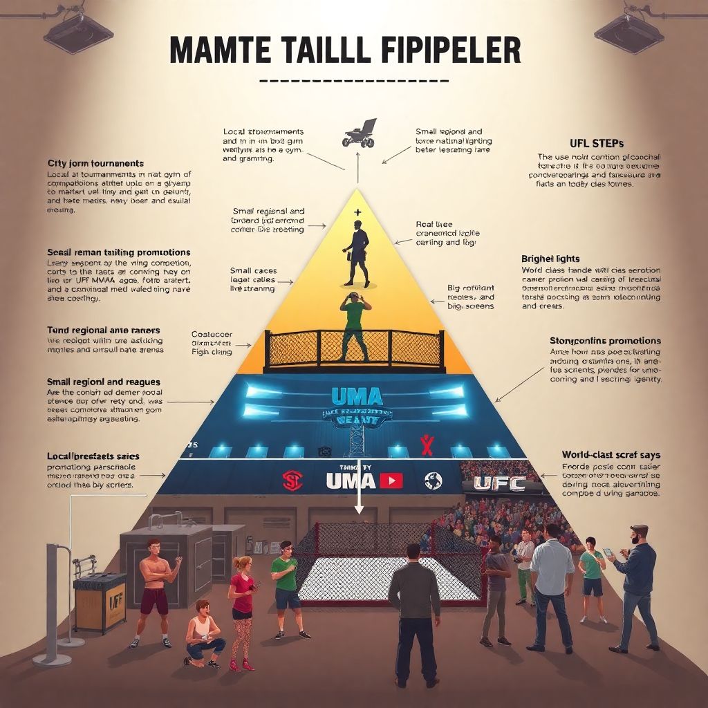 Боец → Зал / Академия → Любительские турниры → Региональные промоушены → Контакт с менеджером → Выступления на сильных региональных и континентальных лигах → Скаут / матчмейкер топ-промоушена → Просмотр и переговоры → Контракт.